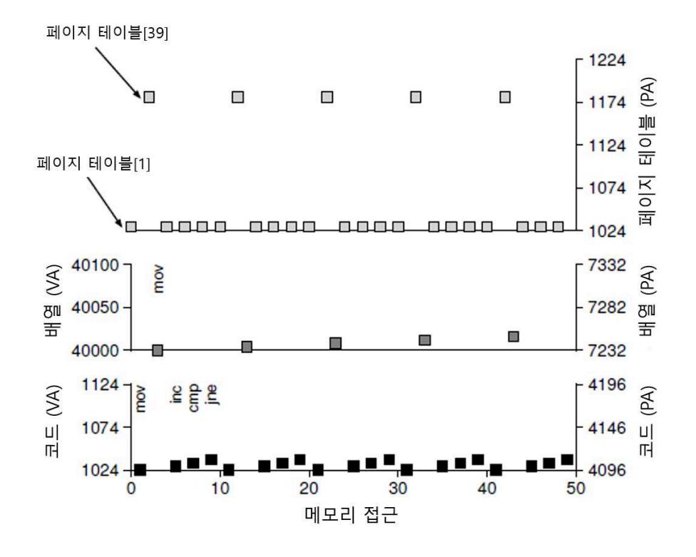 <그림 18.7> 가상 (및 물리) 메모리 추적